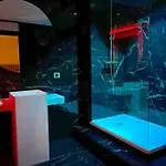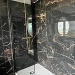 La Suite Luxe : Vue Mer - Malo'Cationアパ-トはベッドル-ム1室があります. La Suite Luxe : Vue Mer - Malo'Cationアパ-トは個別のトイレ,バスタブ とシャワ-のある1室のバスル-ムを提供しています.